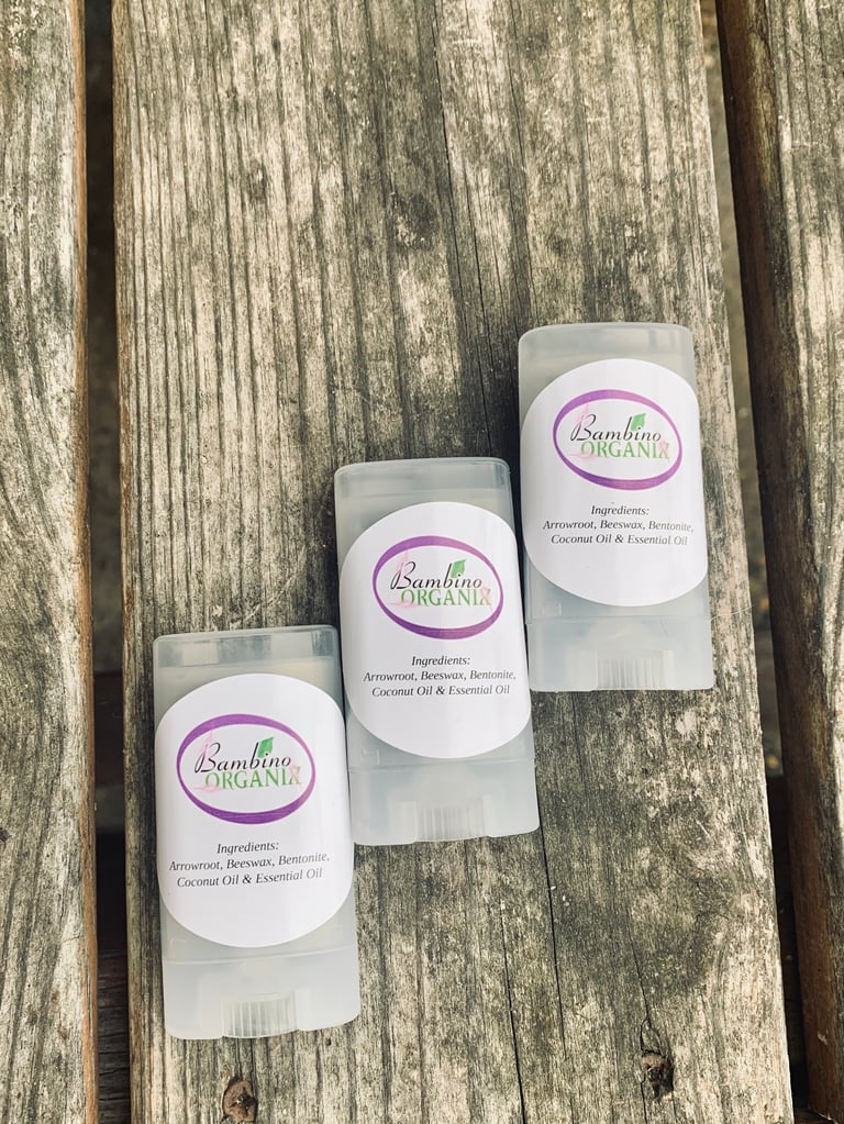 Our 15ML Natural Deodorant is composed of raw Arrowroot, Beeswax, Bentonite , Coconut oil , sheabutter , and essential oil for for fragrance . Our Plasic containers are also BPA free.